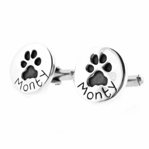 Embossed with a reproduction of your pets paw print. Any sized paw print can be reproduced onto the Round Cufflinks but please note that it takes approximately 4 weeks to create it!