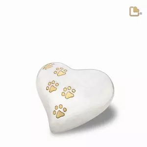 Medium Heart Pet Urn Pearl White & Bru Gold | Vol. 0.45 Liter | L 12.5 Cms W 14 Cms H 7 Cms | Brass | PearlCoat™ P638M