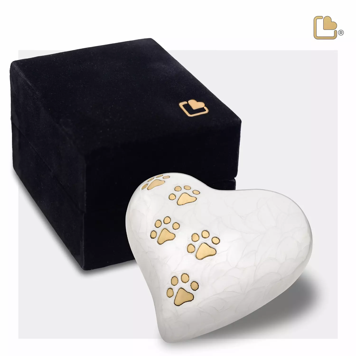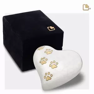 P638K Keepsake Heart Pet Urn Pearl White & Bru Gold | Vol. 0.05 Liter | L 7 Cms W 8 Cms H 3 Cms | Brass | PearlCoat™