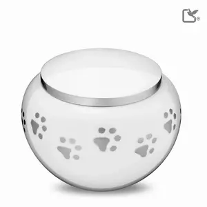 P272L Classic™ Round Large Pet Urn White & Bru Pewter | Vol. 1.35 Liter | L 15 Cms W 15 Cms H 12 Cms | Alloy | GlossCoat™